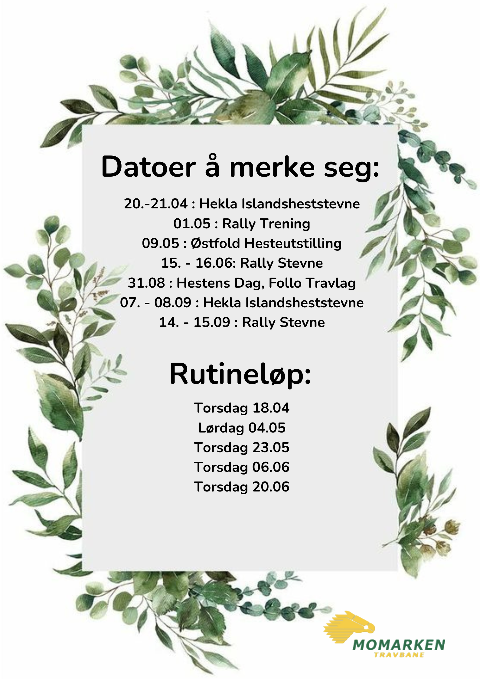 Datoer å merke seg!